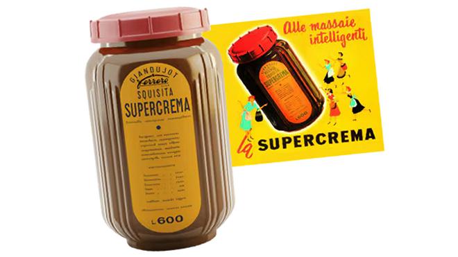 La crema spalmabile più famosa al mondo, nel ’69, già si chiamava così da qualche anno: prima di allora era in realtà il Giandujot, nato per recuperare la tradizione cioccolatiera torinese del gianduiotto, e con lo stesso scopo del cioccolatino: sostituire il cacao (costoso e difficile da reperire, ai tempi del blocco napolenoico così come nel secondo Dopoguerra) con le nocciole, di più facile reperibilità. Il successo è tale che la pasta Giandujot viene immediatamente trasformata in un nuovo prodotto da lanciare, dimostrando un grande intuito dei Ferrero per le trovate di marketing: siamo nel 1951, e nasce la Supercrema.
