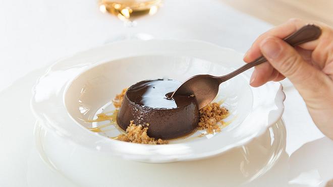 Per chi non lo sapesse, il bunet (o bonet) è un dessert al cucchiaio tipico piemontese, dall’aspetto simile al budino, che si prepara, nella versione attuale, con cioccolato, amaretti, latte, zucchero e – come si diceva sopra – uova. La cottura avviene in forno a bagnomaria, come si fa con il creme caramel, ed è sicuramente un dolce di ispirazione francese. Non c’è un ristorante torinese che non si confronti con la ricetta.
