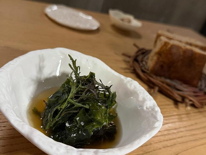 E proprio il banco è il punto di vista ideale per apprezzare il lavoro in sala di Imanol Cuesta e Giacomo Pruccoli, talenti decisamente all’altezza di quelli in cucina, autori di un servizio elegante e perfettamente coordinato, sostenuto da una carta dei vini non chilometrica ma ben concepita, impreziosita da un kombucha della casa come proposta analcolica e un servizio “por copa” di vermouth e sidro.