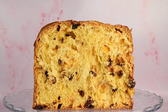 Lista ingredienti: Farina di grano tenero tipo “0”, uva sultanina, scorze d’arancia candite (scorze di arancia, sciroppo di glucosio-fruttosio, zucchero), burro, zucchero, tuorlo d’uova fresche, lievito madre naturale 7,5% (farina di grano, acqua), sciroppo di zucchero invertito, emulsionanti: mono- e digliceridi degli acidi grassi (di origine vegetale); latte intero fresco pastorizzato 0,8%, sale, aromi naturali.