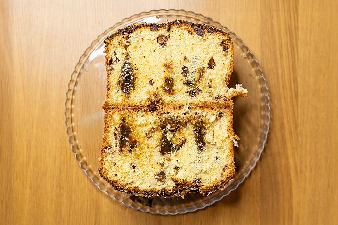 Tarchiatello e irregolare, non è certamente un panettone che svetta dal pirottino. Una volta scartato ci saluta con una zaffata potente di alcol etilico, il peso specifico è quello del plutonio. La glassa è ricca di pistacchi ma più che kataifi, quei fili bianchicci sembrano residui di falegnameria.