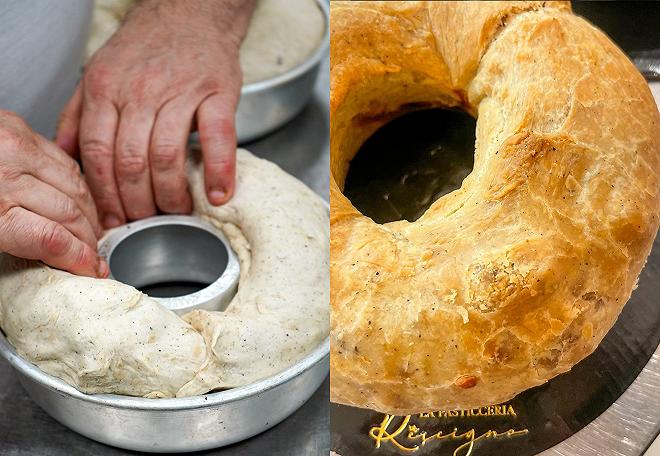 Siamo alla Sanità, direttamente nel ventre del quartiere a me molto caro che sta cambiando pelle. Quarta generazione di panificatori per questo storico tarallificio; la gente scende qui a farsi una cultura e finisce per ingozzarsi di pagnottielli. I loro casatielli pasquali muovono folle anche dai quartieri limitrofi.