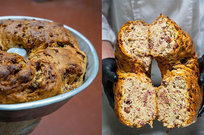 Il suo casatiello viene realizzato con lievito madre, farine selezionate e fermentazioni da laboratorio applicate alla grammatica della tradizione partenopea. L’avamposto per procurarsi questa chicca a Napoli è 10 in Teglia, la sua nuova pizzeria al taglio.