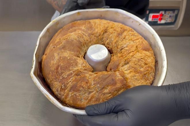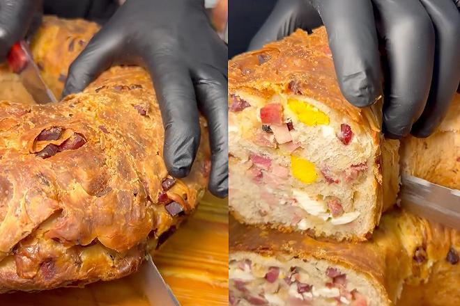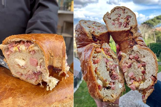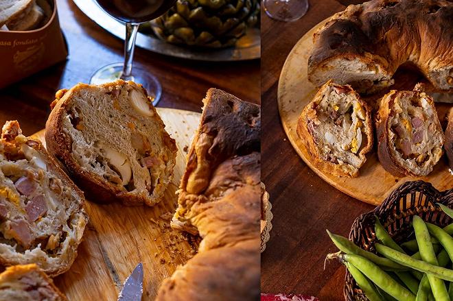 - Il casatiello non è un “pane arricchito”. È una ciambella arrotolata carica di sugna, pepe nero a valanga, cicoli (ciccioli), salumi misti, talvolta provolone e copiose manciate di pecorino. Il colpo di grazia? Uova intere col guscio poggiate sopra e fissate con strisce di pasta messe a croce.