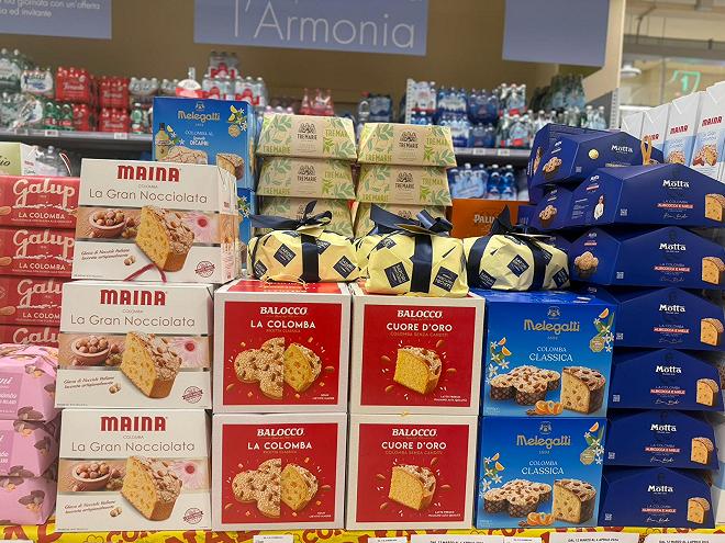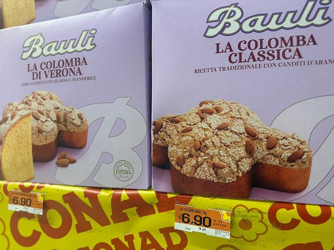 Basta affiancare le immagini per capire che quello a cui stiamo assistendo non è un rincaro stagionale, è sontuosa estorsione. A Natale, in questo stesso metro quadro di linoleum, un chilo di Panettone Bauli costava 4,90€. Era il prezzo onesto per un lievitato industriale senza troppe pretese. Oggi il Bauli a guisa di uccello, la colomba nella storica scatola lilla, costa 6,90€. È la tassa sul piccione, due euro secchi, un rincaro del 40% in tre mesi. Farina, uova e burro non hanno subìto fluttuazioni da dicembre a marzo, il mercato è fermo, ma la colomba vola altissimo.