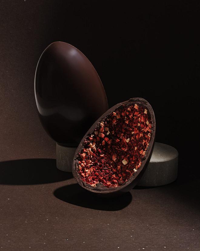 Si chiama Rossella l’uovo dell’azienda di Senigallia. Cioccolato fondente 70% della Valle di Sambirano, arricchito con pepite di frutti rossi essiccati e croccante granella di lamponi e ciliegie, regalando un perfetto equilibrio tra dolcezza e vivacità aromatica.